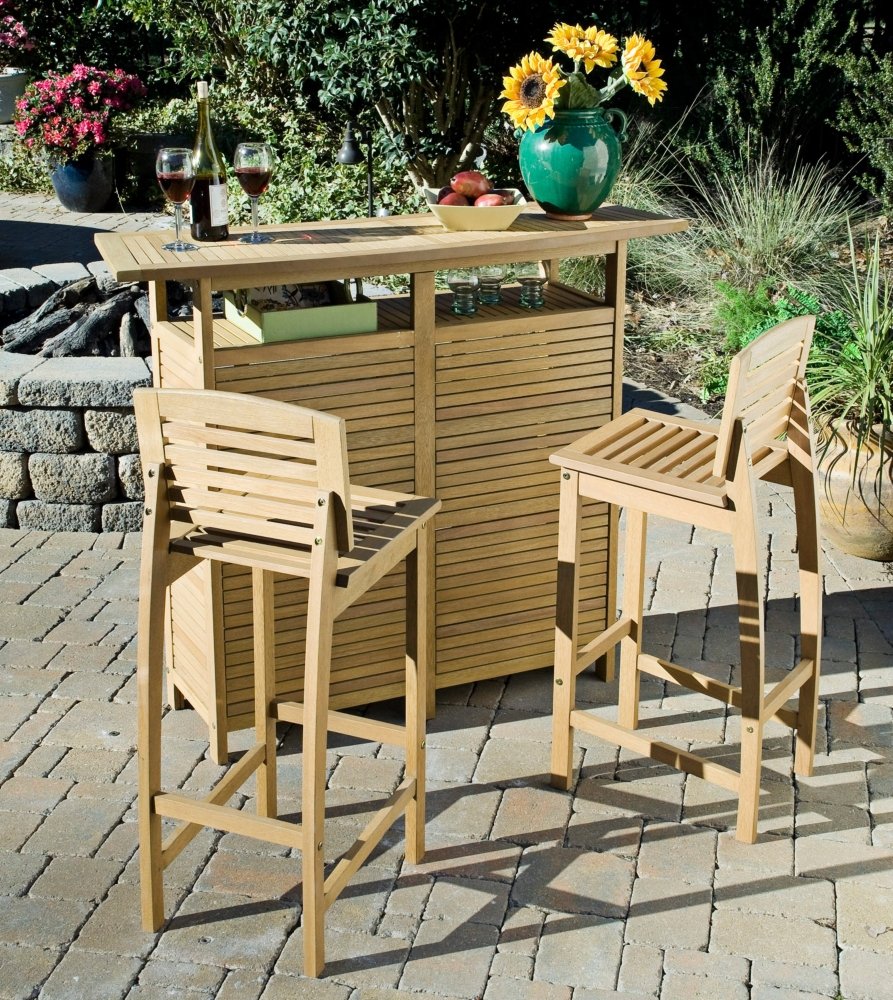 This three-piece bar set is constructed from water resistant plantation timber which makes it perfect for outdoor use.